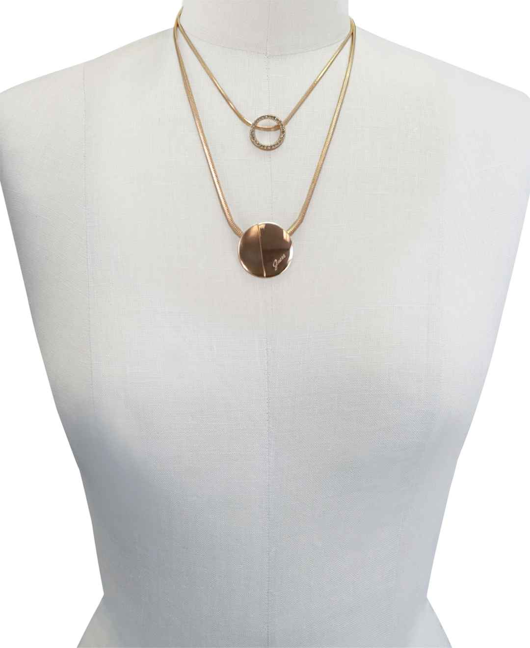 Select your style depending on the day with this two-piece set of gorgeous necklaces by Guess, featuring a larger smooth pendant and a smaller pave-embellished one. Created in rose gold-tone mixed metal. Approximate length: 17" and 20 + 2" extender. Approximate drop: 3/4" and 1".
