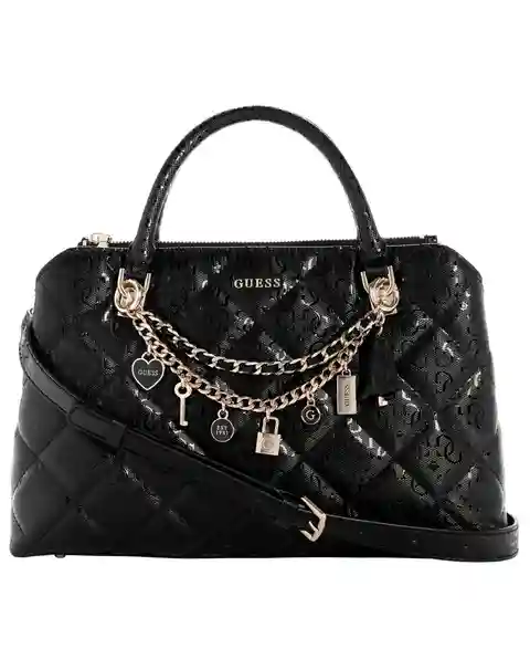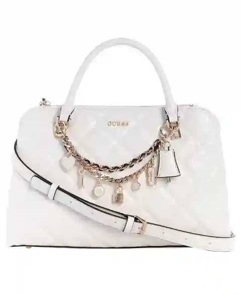 Make a statement with this Guess Libby satchel bag, designed with shiny gold-tone hardware and a removable charm. The detachable crossbody strap offers multiple ways to wear it, and the slip and zip pockets allow for organized storage.