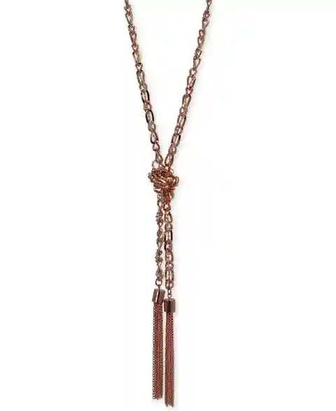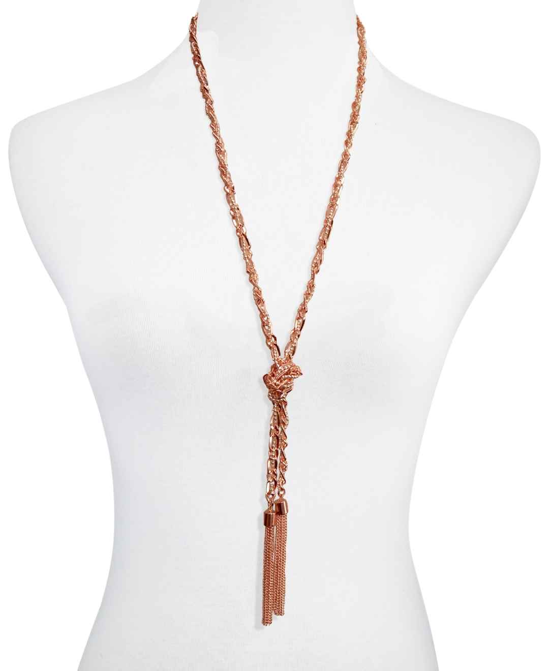 Guess Two-Tone Long Knotted Tassel Lariat Necklace - Rose Gold