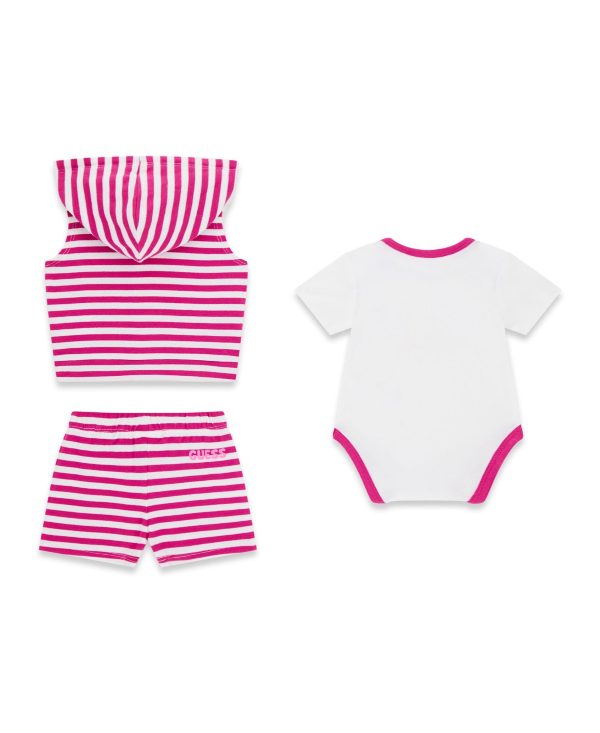 Home GUESS Guess Baby Girls' Hooded Vest, Short-Sleeve Bodysuit, and Short, 3-Piece Set - Pink/White