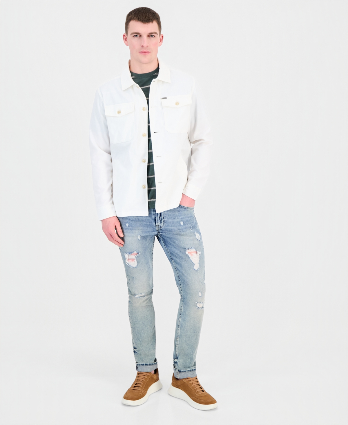 From Guess, this long-sleeve woven jacket features a clean, structured silhouette with a smooth, refined surface that gives it a polished everyday look. Designed with dual flap chest pockets and subtle stitched detailing, it blends functional elements with a minimalist aesthetic. The mid-weight fabr...more