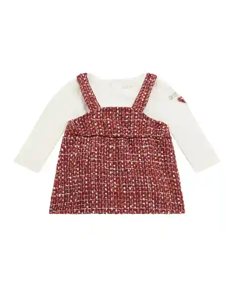 Keep your little one stylish in this Guess set, featuring a long sleeve stretch bodysuit with a jersey patch at the arm topped with a metallic embroidered brand logo and sequins. The skirtall is crafted in a cute tweed fabrication and features an elastic waist for comfort.