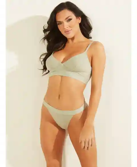Sporty meets sultry in this comfortable full-coverage bra featuring lightly padded cups and a logo-printed elastic band. Pull on.