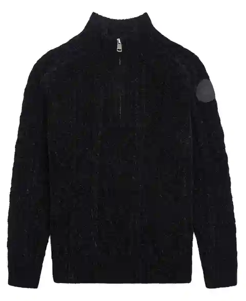 Offering a cozy and stylish layer, this Guess sweater features a chenille knit and a rib stitch at the neck, cuffs, and hem. A distinctive G logo patch at the left sleeve adds a signature brand touch.