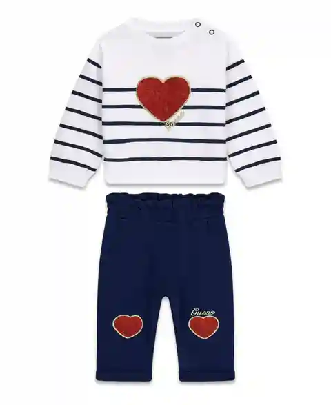 Guess Baby Girls Long-Sleeve Sweatshirt and Sweatpants, 2-Piece Set - White/Blue