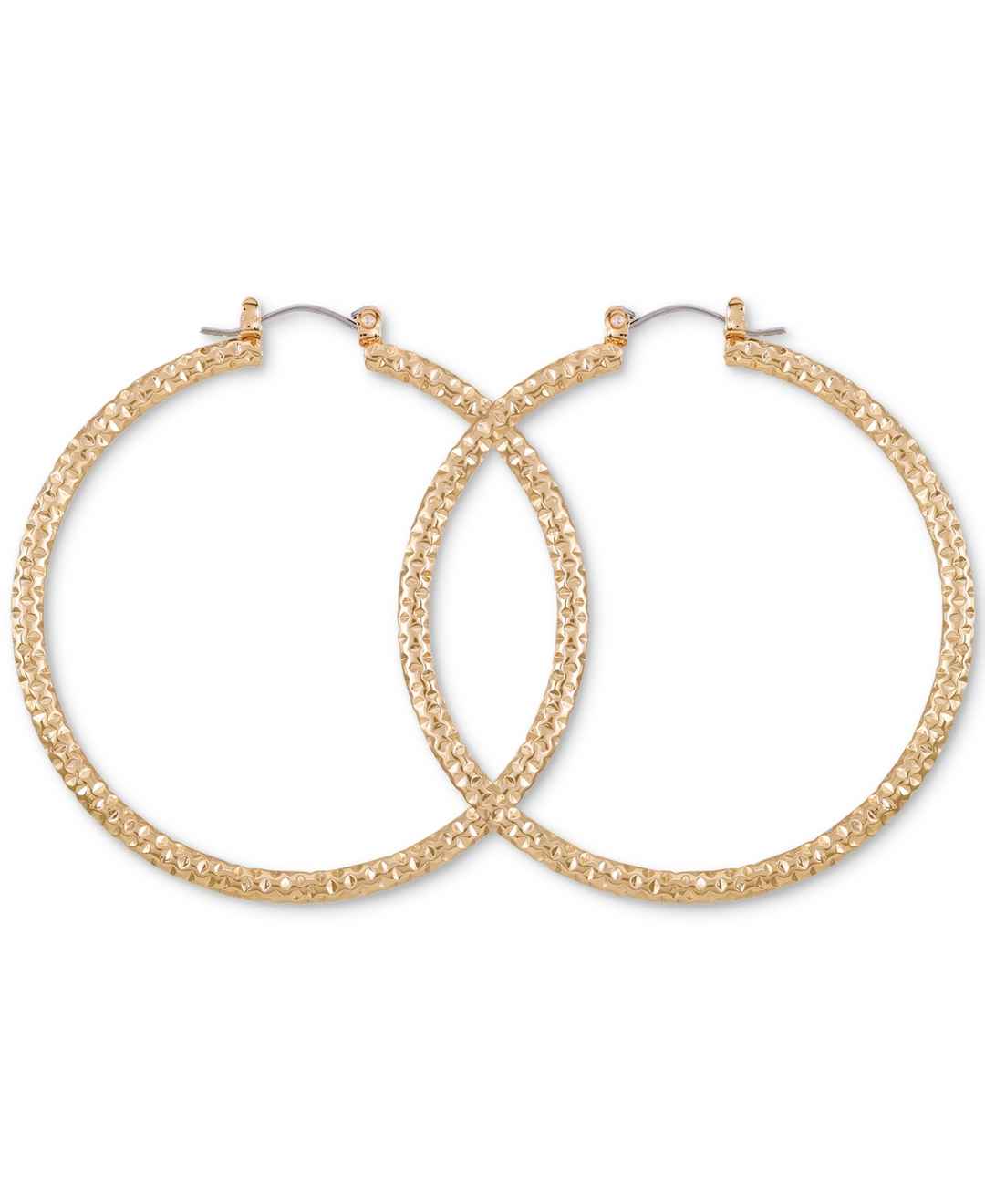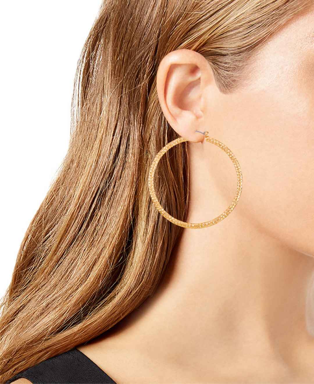 These chic Guess hoop earrings feature a diamond-cut texture that catches the light beautifully, offering a stylish and sophisticated accent to any outfit.