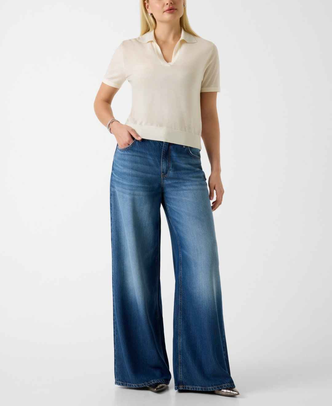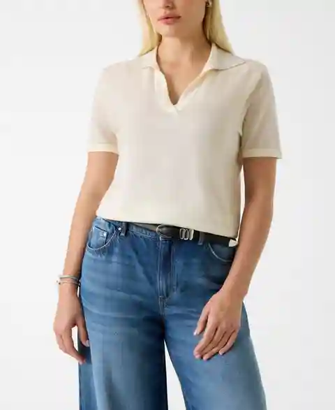 Guess Juniors' Short-Sleeves Rhinestones Polo Stormi Sweater - Cream White