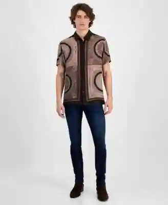 Guess Mens Relaxed Fit Medallion Print Button Down Shirt Slim Fit Jeans