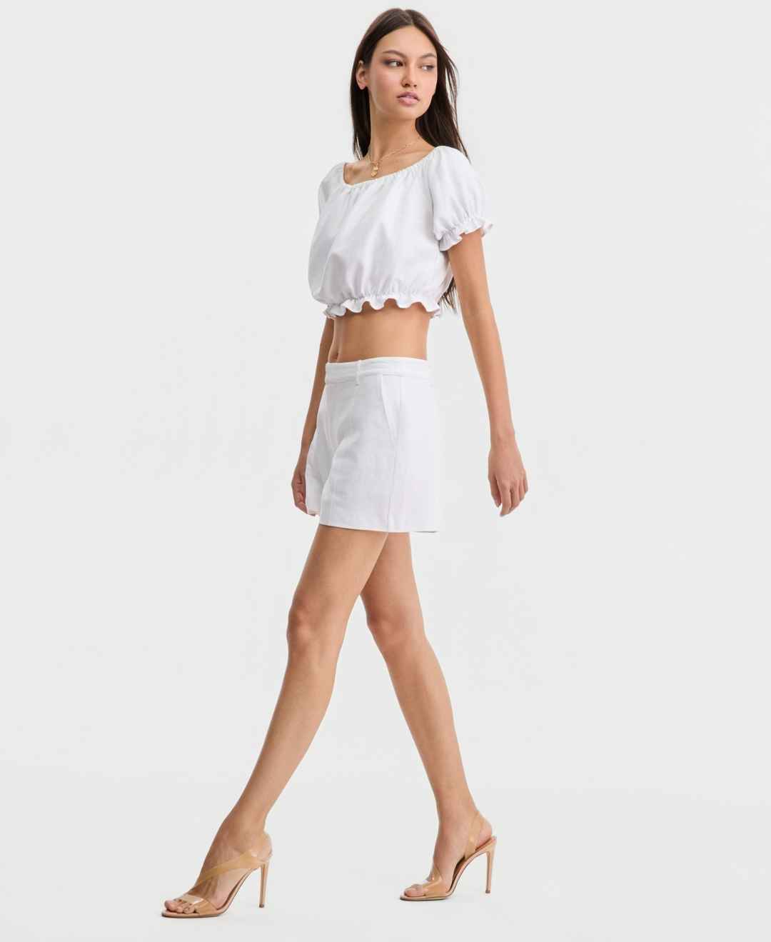 Guess Women's Arya Linen High-Rise Shorts - Pure White