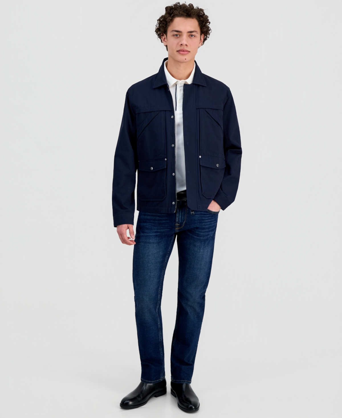 A canvas twill jacket from Guess is designed for versatility and durability. The refined texture, structured silhouette and utility details elevate any look.