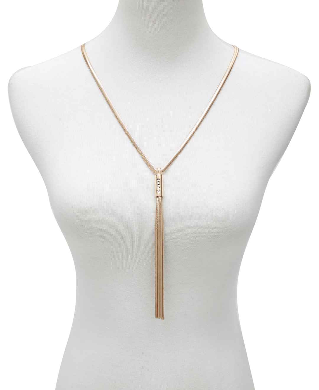 Opt for sought-after style with this logo-etched snake-chain lariat necklace from Guess.