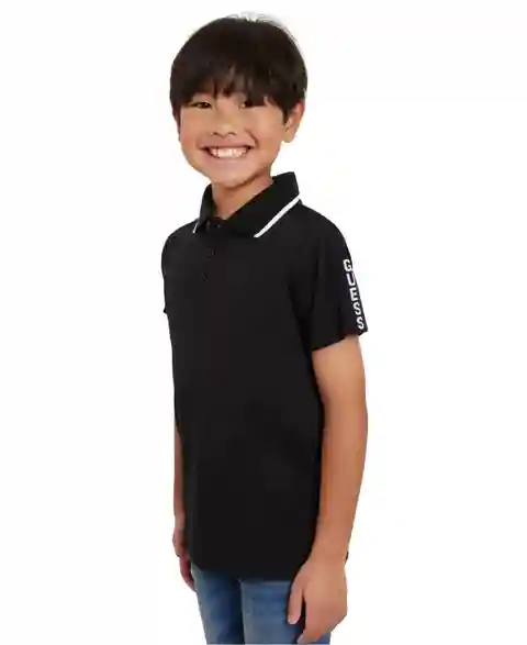 This knit piquet polo is both versatile and timeless. Perfect for any occasion with its stylish Guess logo taping on its sleeves. Features 3 button placket at front.