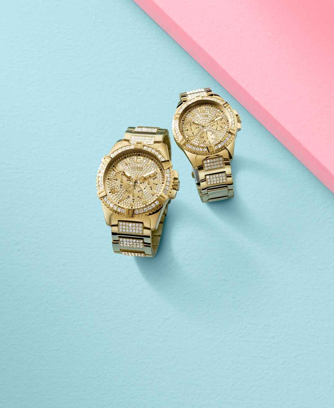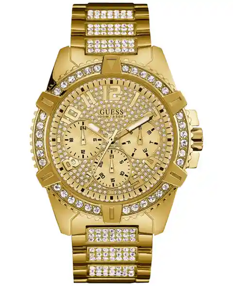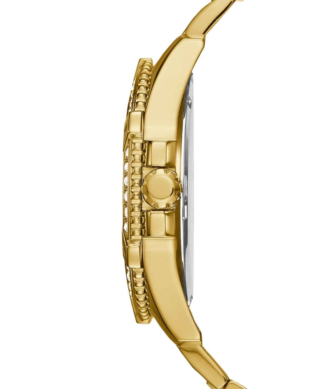 Shining crystals highlight the gleaming gold-tone stainless steel of this show-stopping watch from Guess. So versatile and stylish, she'll want one too.