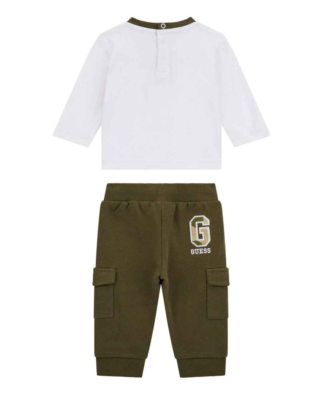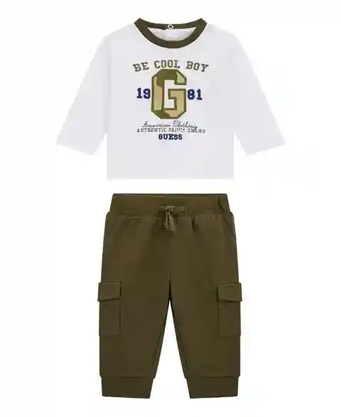 They will look cute as can be in this adorable Guess 2-piece set. Featuring an easy Long Sleeve T-shirt and Cargo Joggers to match. The top includes a canvas patch, a terry patch on top, tons of embroidery, and a crackle print effect. A super cute outfit for them.