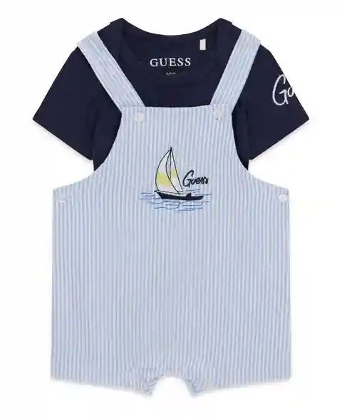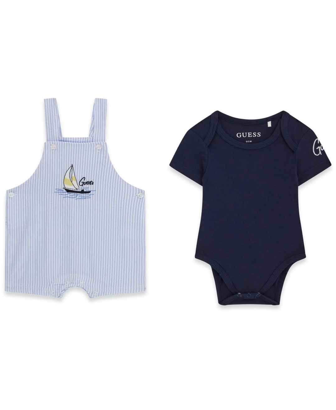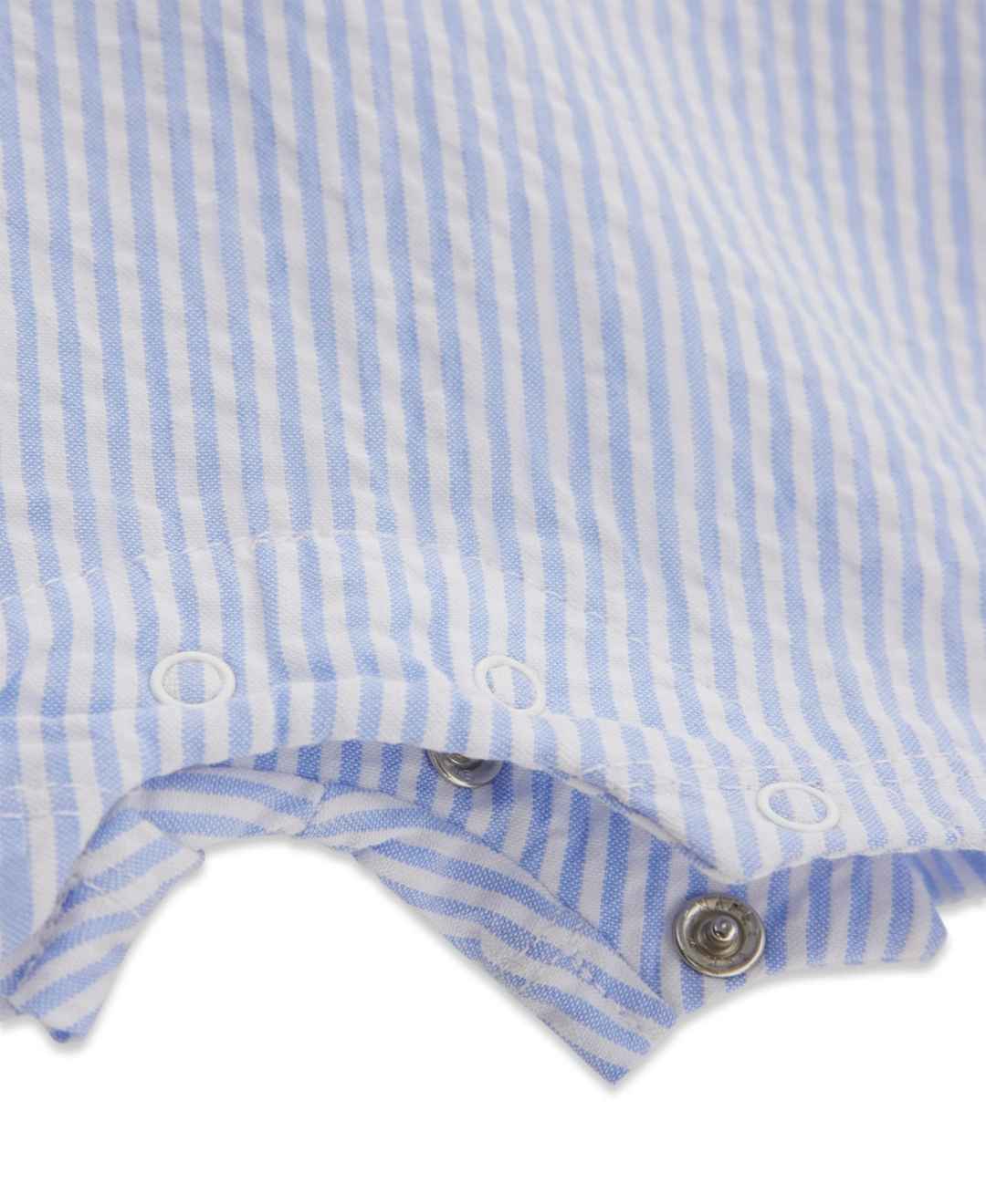 Embroidered sailing motif seersucker shortall and cotton jersey short sleeve bodysuit 2-piece set.