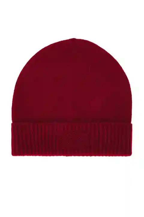 Guest In Residence Rib Cuff Beanie in Red 100% cashmere. Hand wash. Midweight knit fabric. GUEF-WA56. A26910RH. About the designer: