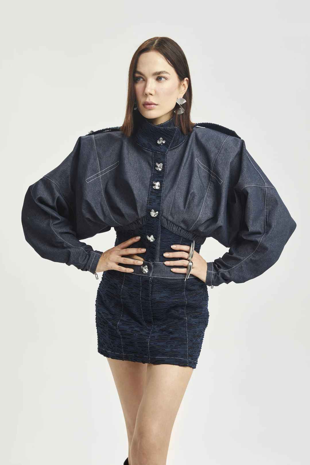 Denim Mini Skirt with Front Zipper