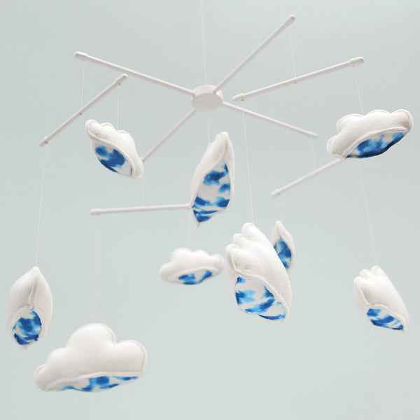 Sky Mobile Description:Want your little one to sleep on cloud nine? They will SNOOze even more sweetly with our Sky mobiles playful clouds dancing above them. And when they wake, your baby will love watching the beautiful sky pattern printed on the underside of each woolen cloud. This special design...more