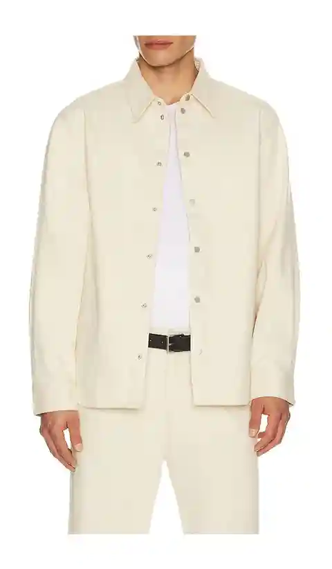 Helmut Lang Denim Shirt in Ivory. - size XL/1X (also in S, XXL/2X) Helmut Lang Denim Shirt in Ivory. - size XL/1X (also in S, XXL/2X) 100% cotton. Machine wash. Front button closure. Button cuffs. Midweight denim canvas fabric. HLAN-MS149. P09DM502.