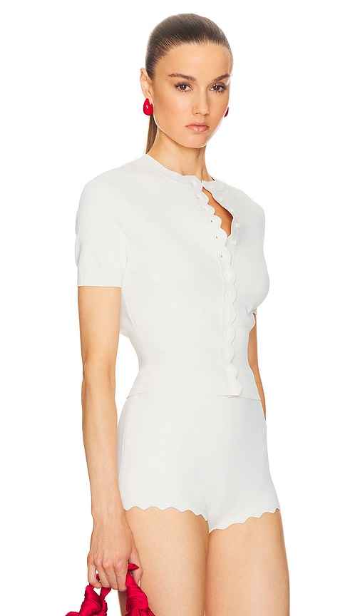 Helsa Elvira Cardigan Top in Cream. - size L (also in M, S, XL, XS, XXS) Helsa Elvira Cardigan Top in Cream. - size L (also in M, S, XL, XS, XXS) 70% viscose 14% polyester 13% nylon 3% elastane. Made in China. Hand wash. Front button closure. Cinched ribbed hem. Midweight ribbed knit fabric with sca...more