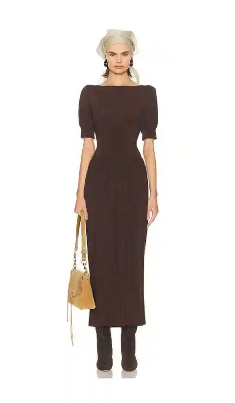 Helsa The Simone Tie Back Jersey Dress in Brown. - size L (also in M, S, XL, XS, XXS) Helsa The Simone Tie Back Jersey Dress in Brown. - size L (also in M, S, XL, XS, XXS) 92% viscose 8% elastane. Dry clean only. Unlined. Back tie-up closures with cut-out detail. Elasticized waist at back. Slinky je...more