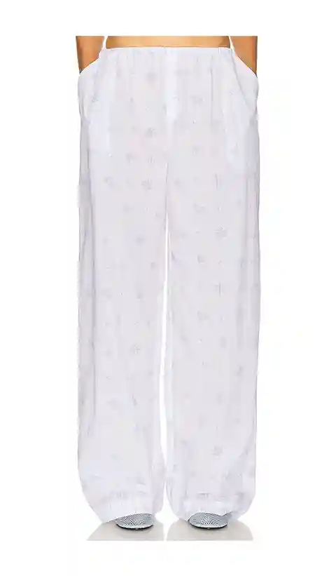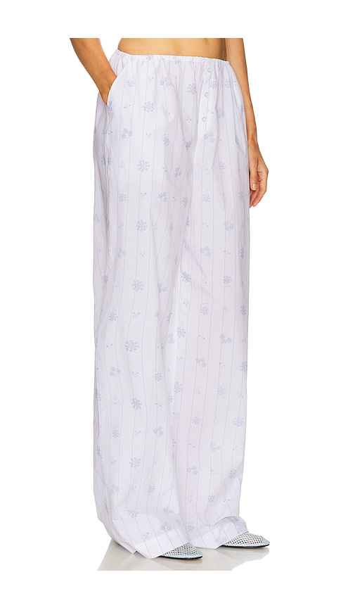 Helsa House Pants in Fleur Print Stripe in White. - size L (also in M, S, XL, XS, XXS) Helsa House Pants in Fleur Print Stripe in White. - size L (also in M, S, XL, XS, XXS) 63% nylon 37% cotton. Hand wash. Elasticized waistband. Faux button fly. Side slit pockets. Poplin fabric. Item not sold as a ...more