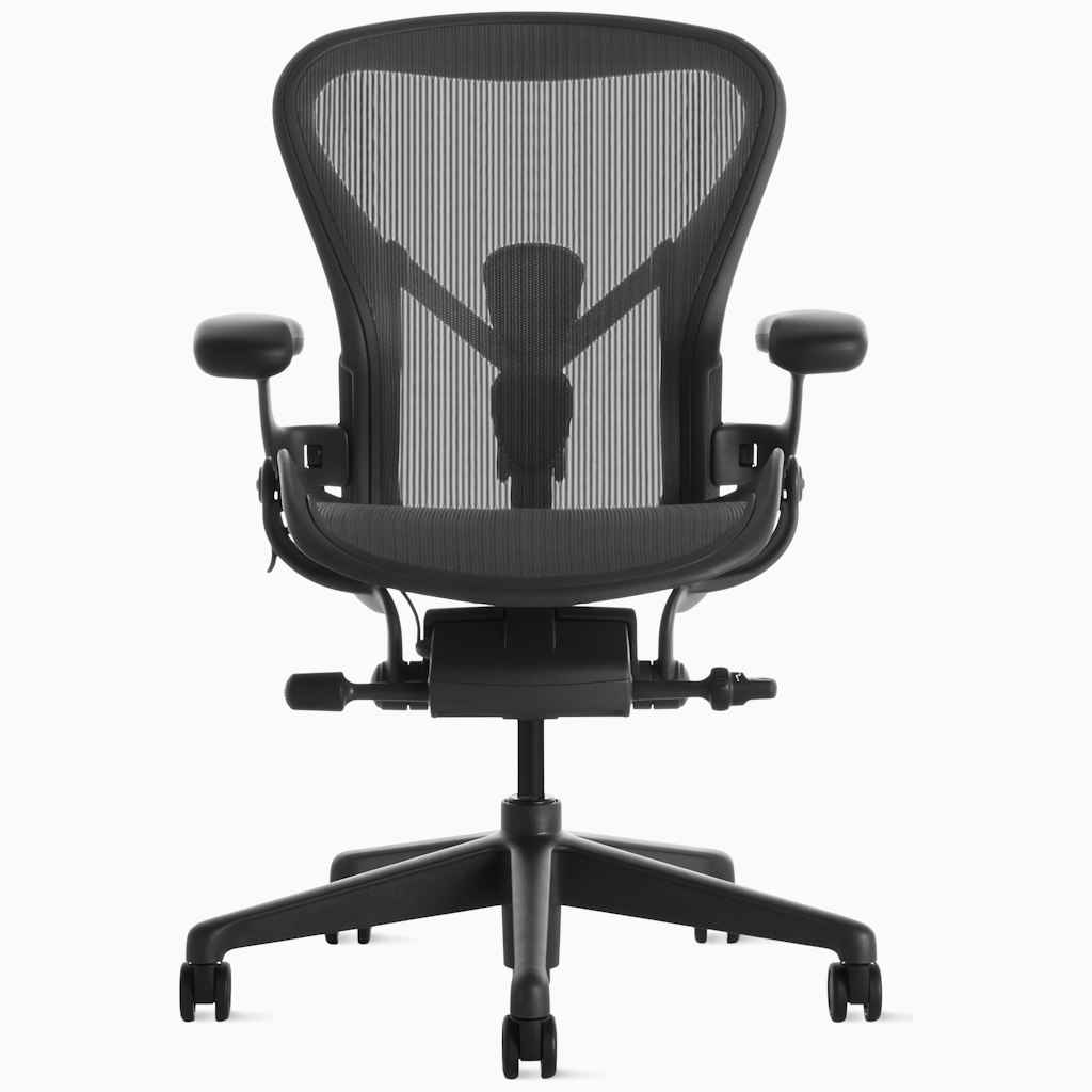 The Aeron Chair revolutionized office seating with its defining design qualities: the pioneering 8Z Pellicle suspension material and its patented PostureFit SL back support, which affords the ideal sitting positionchest open, shoulders back, pelvis tilted slightly forward. Combining a deep knowledge...more