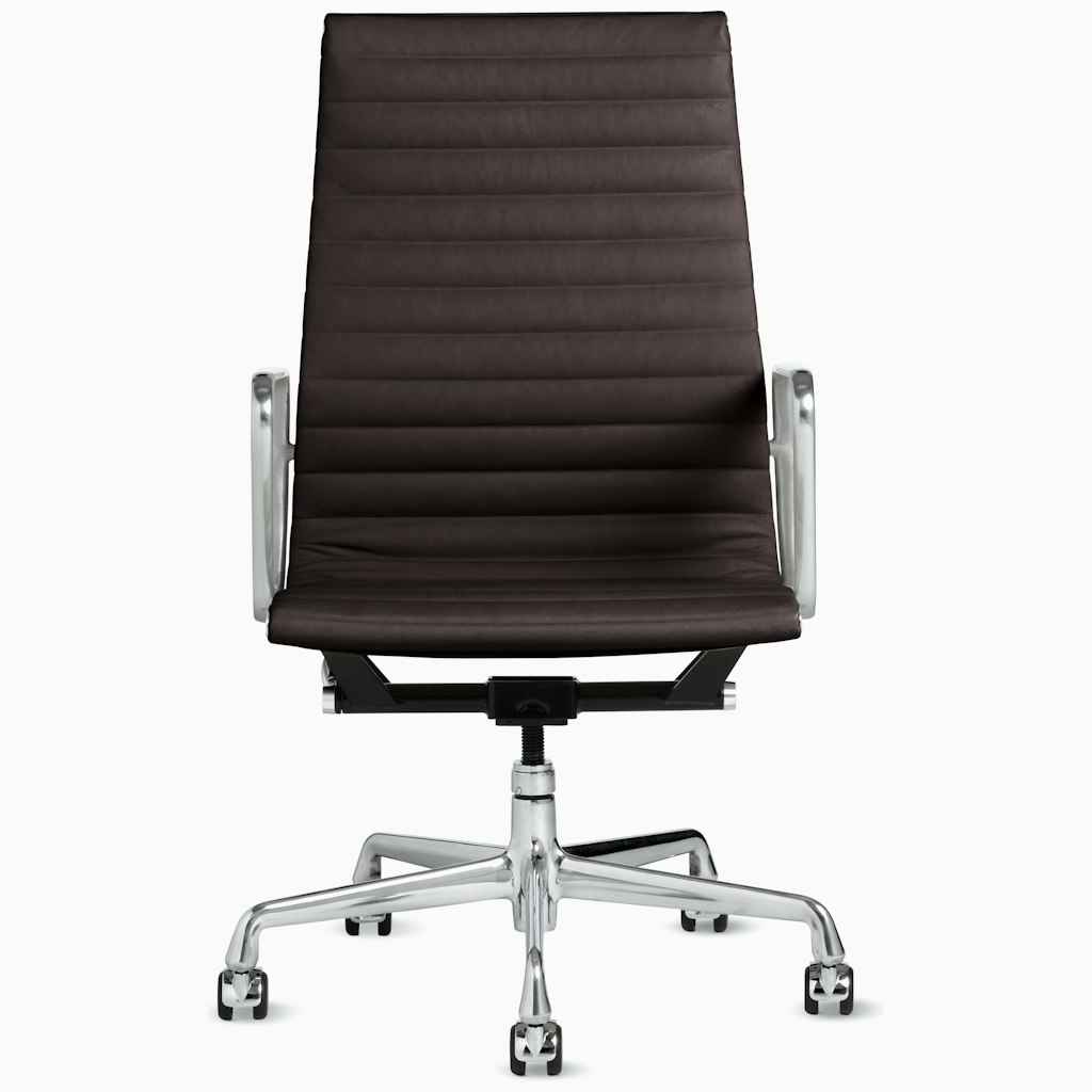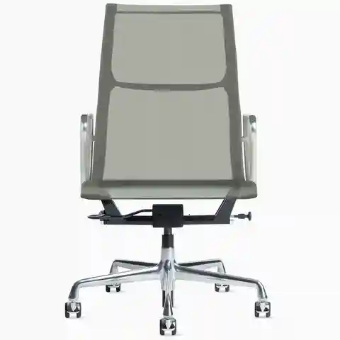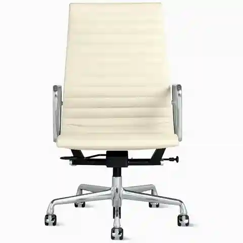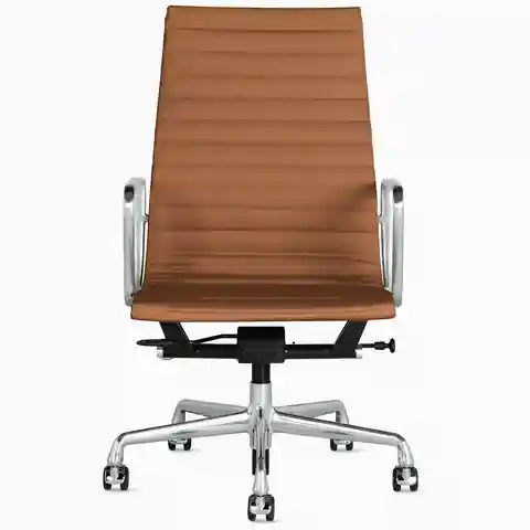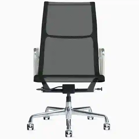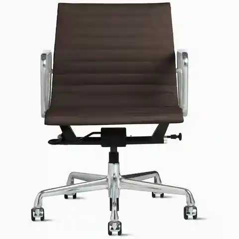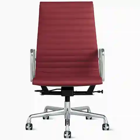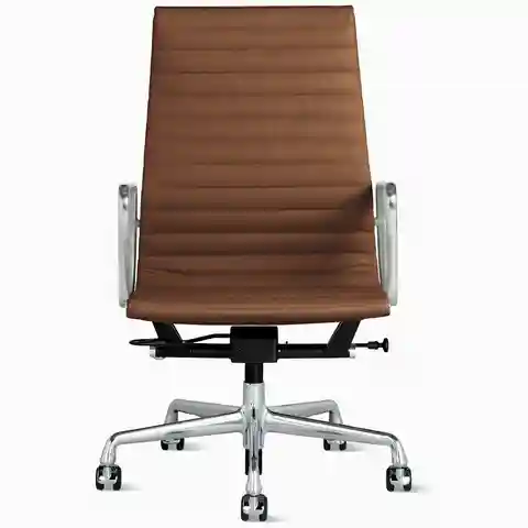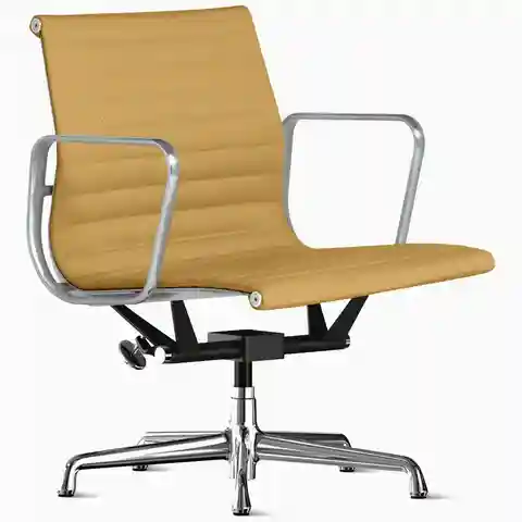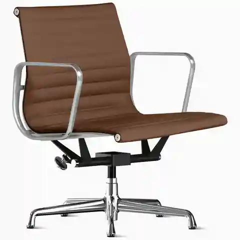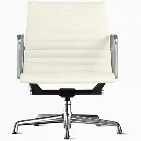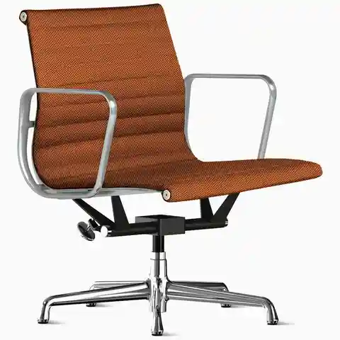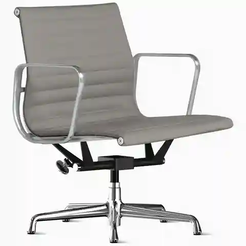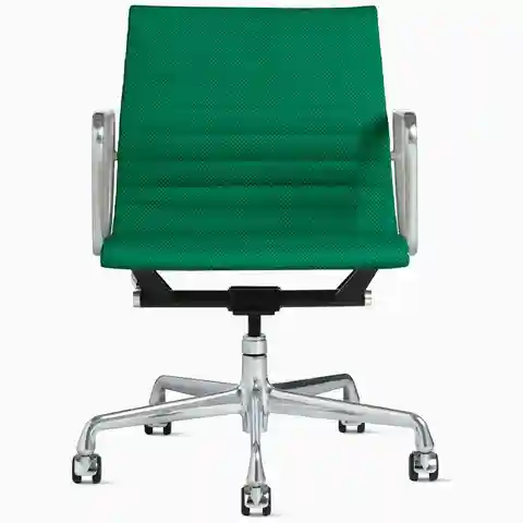 The Eames management chair is part of the Eames Aluminum Group Collection. These distinctive chairs resulted from the Eames''s experimentation with aluminum, which became more affordable after WWII. Today, the management chair has aluminum side ribs that hold the one-piece, seat-back suspension taug...more