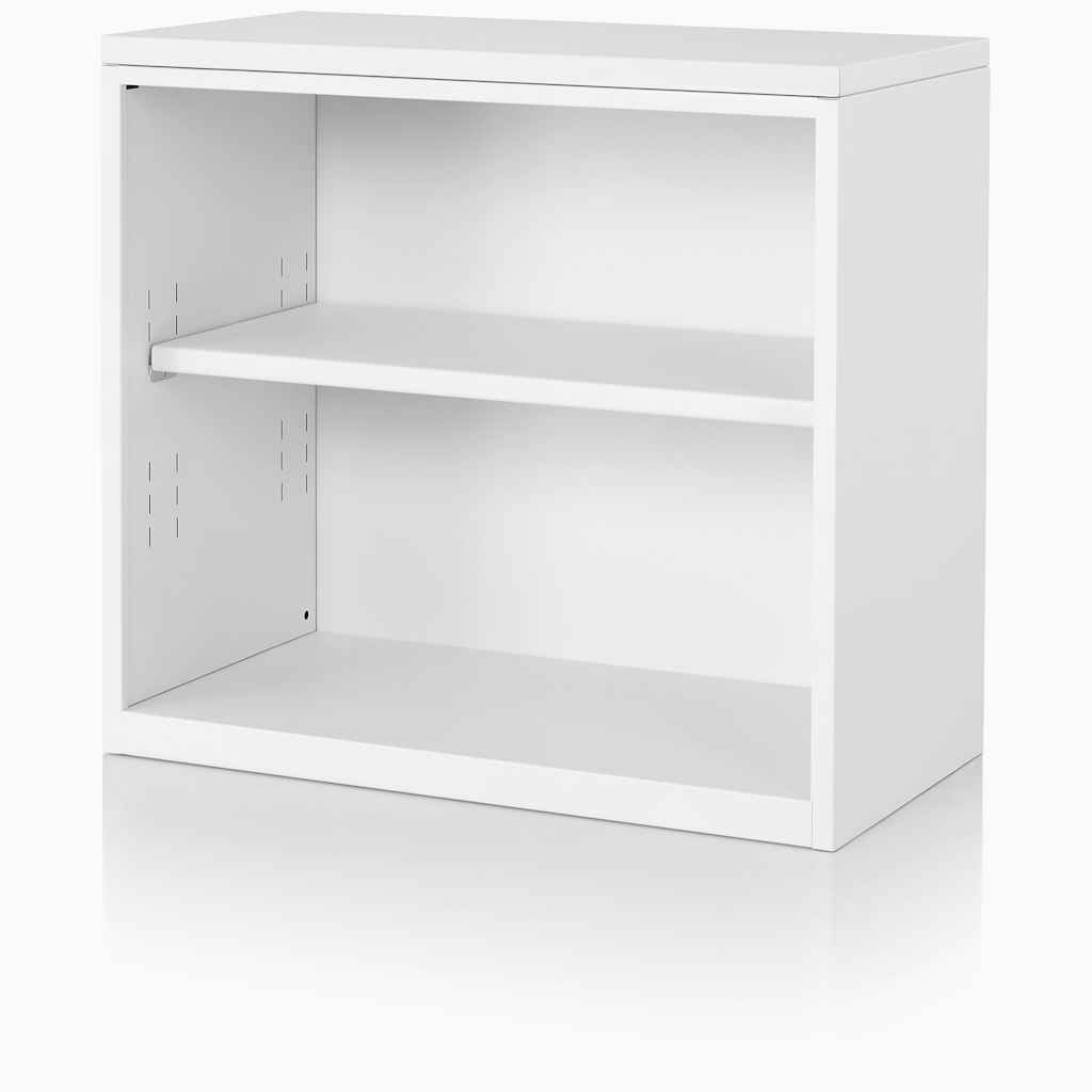Tu Bookcases really hold up. Their coated metal shelves can withstand heavy items and adjust with minimal effort as storage needs change. At 15" deep, they easily house tools, personal items, and of course, books of any size. | Herman Miller Tu Bookcase in White