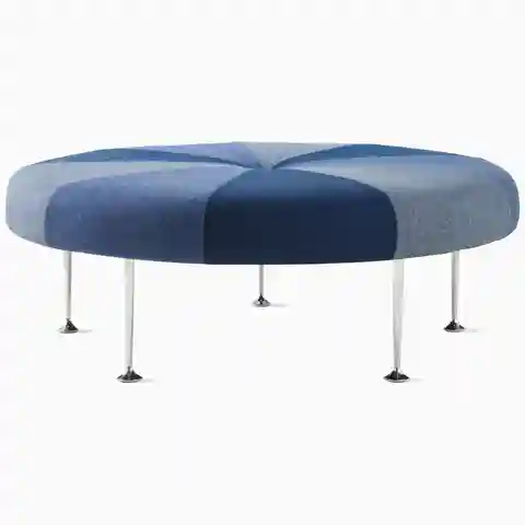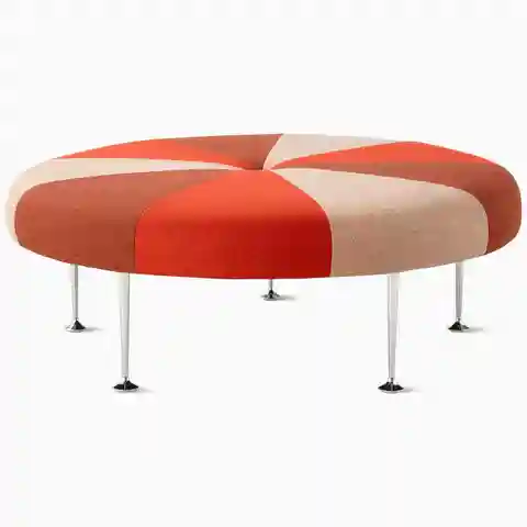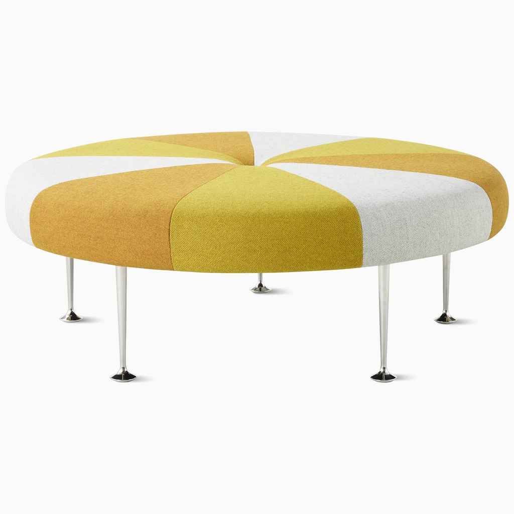 Playful, colorful, and graphic unmistakably the work of Alexander Girard this low, round ottoman comes upholstered in an array of bold colors or distinctive stripes and stands on polished aluminum legs. | Herman Miller Girard Color Wheel Ottoman in Gold