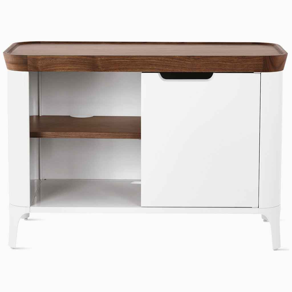 Ayako Takase and Cutter Hutton of Observatory designed the Airia Media Cabinet as a companion to the Airia Desk. The pieces share a material language a handsome combo of walnut and painted aluminum and support functional and aesthetic needs in the home office. | Herman Miller Airia Media Cabinet i...more