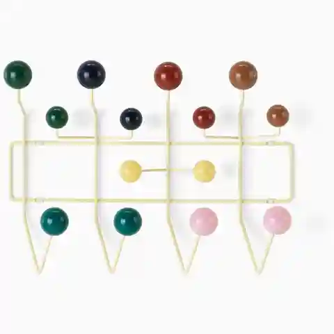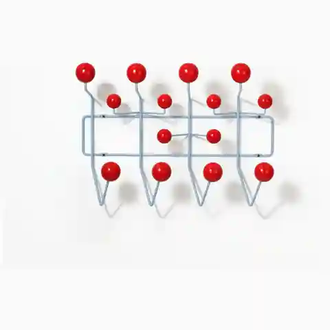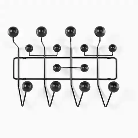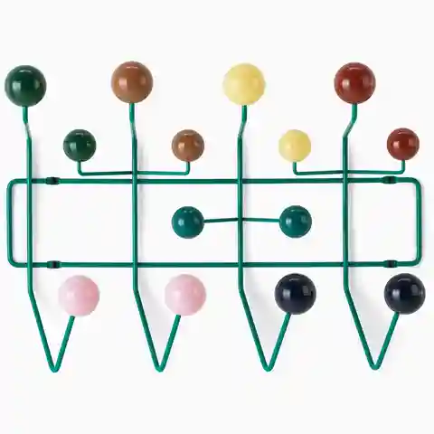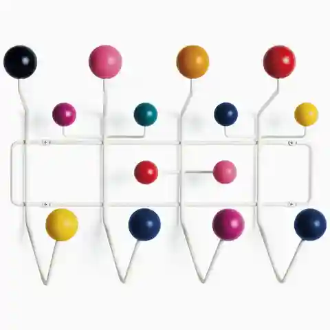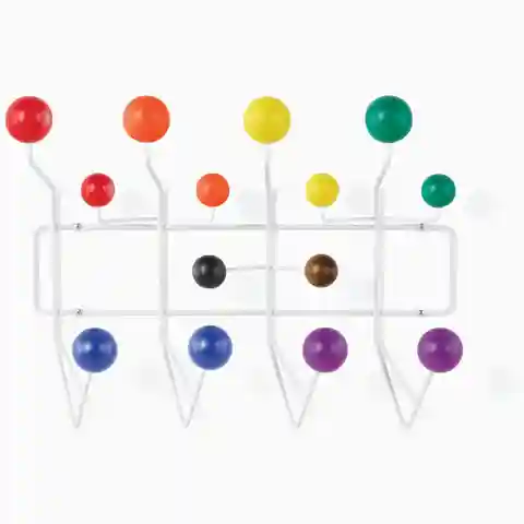 The Eames Hang-It-All, originally released in 1953, exemplifies the Eameses'' belief in taking pleasure seriously. Made with a sturdy steel frame and solid wood balls, this colorful coat rack was created using the same technique for simultaneously welding wires that Charles and Ray developed for the...more