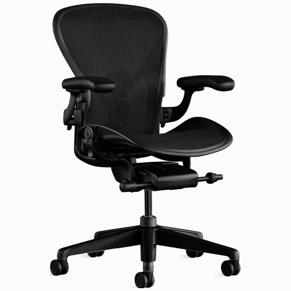 Aeron can be found in pro-sports locker rooms, recording studios, the MoMA permanent collection, and now, with you and your gaming setup. We worked with gamers to design the best configuration and added Onyx as a colorway, our darkest and most eco-friendly shade yet. Maintain the ideal sitting postu...more