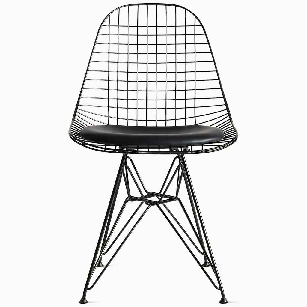 Sometimes referred to as the "Eames office wire chair" or "wire back office chair," the Eames Wire Chair (1951) can now be found in homes (and museums) around the world. Streamlined and lightweight, the polished steel wire seat can be combined with your choice of three base styles and an optional on...more