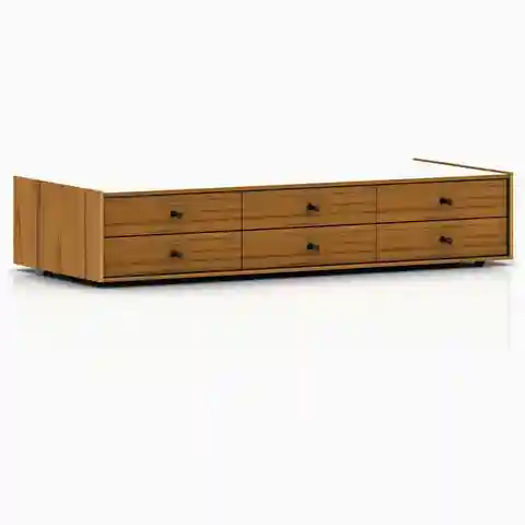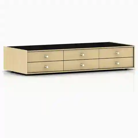 Each of the drawers in the Nelson Miniature Chest 6 Drawer (1952) is hand-fit by U. S. -based cabinetmakers to ensure the vertically stacked units will have proper alignment and that the wood-on-wood glides will operate smoothly now and in the future. The drawers of this modern miniature chest are ...more