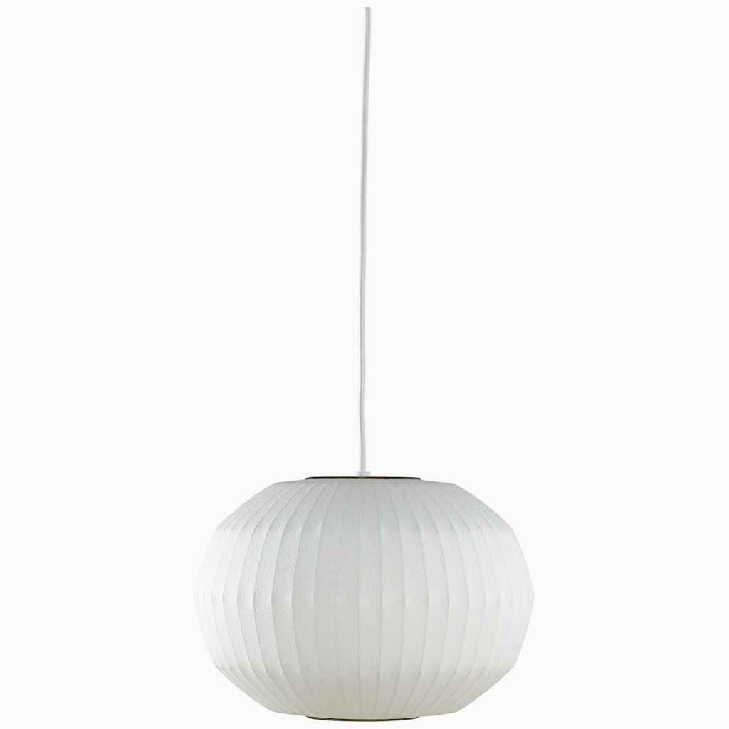 Mixing angles and curves, the Nelson Angled Sphere Bubble Pendant (1952) plays with shape and geometry. The fixture floats delicately overhead, comes in three sizes, and features nickel-plated mounting hardware. The Sphere Pendant Lamp is produced in collaboration with the George Nelson Foundation. ...more