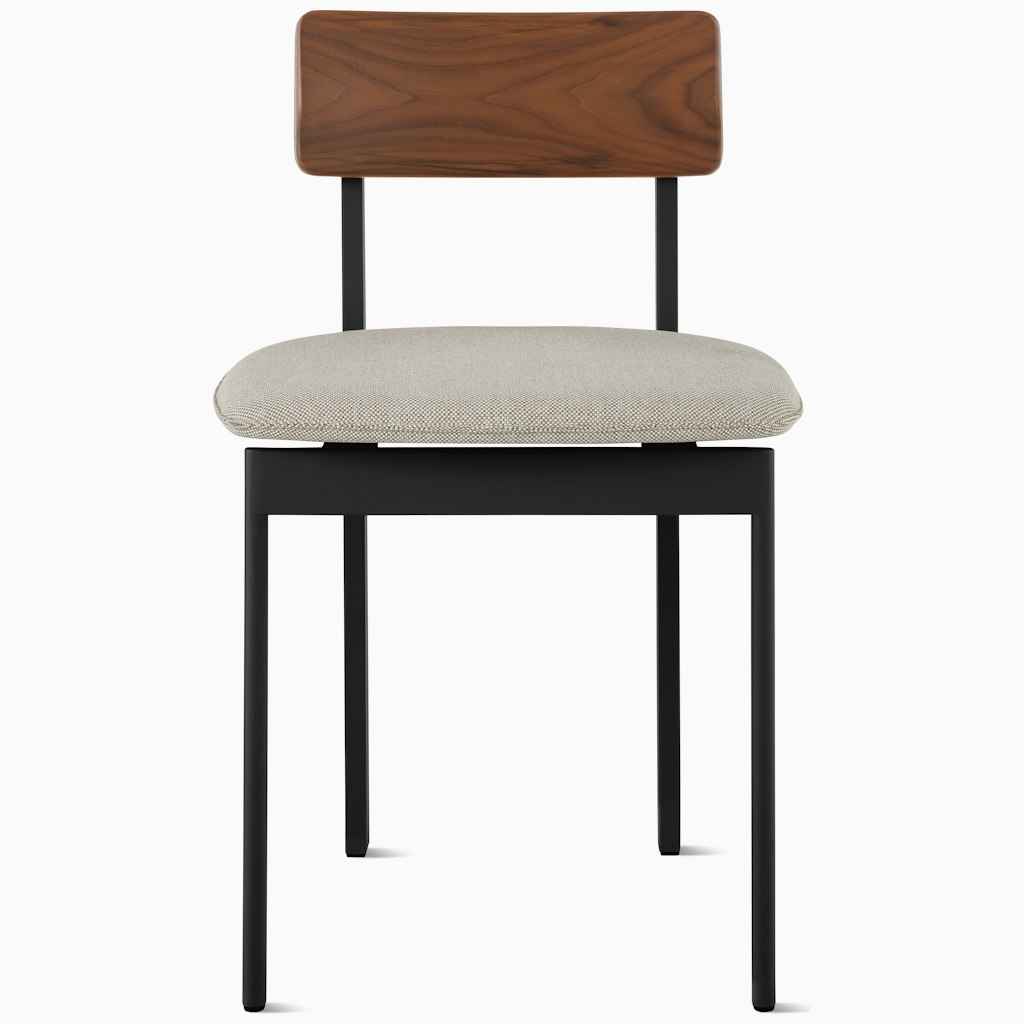 The Betwixt Mixed Materials Chair may be simple, but it''s never boring. Depending on your perspective, its frame changes in appearance for visual interest, and its lower-than-usual back height affords clear sightlines when positioned under a dining table. It''s crafted with a powder-coated steel fr...more