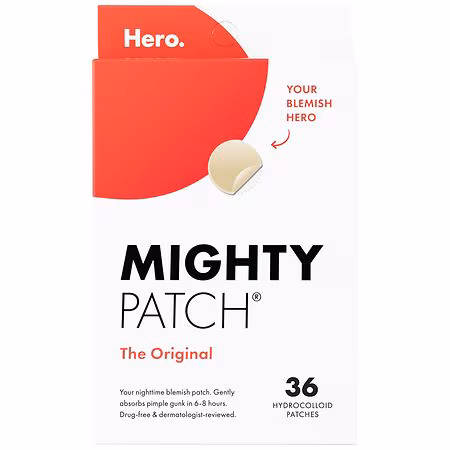 Shrink the look of whiteheads overnight with Mighty Patch Original acne patch. Gently absorbs pimple gunk (and supports a healing environment) so zits look better by the AM. Works in 6-8 hours Drug-free & medical grade Strong enough to wear overnight Made in South Korea