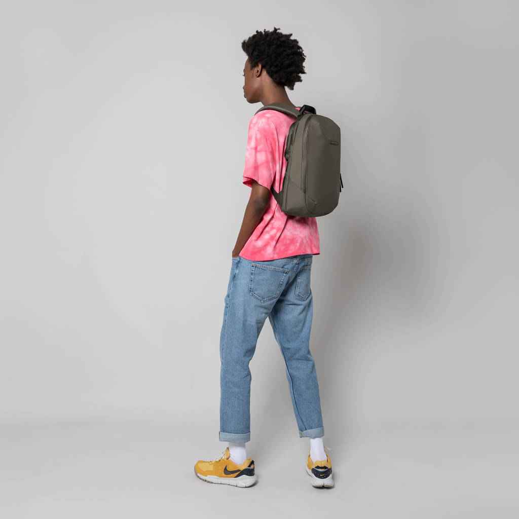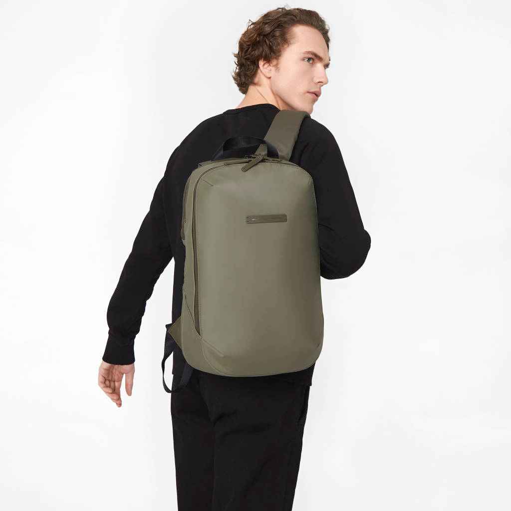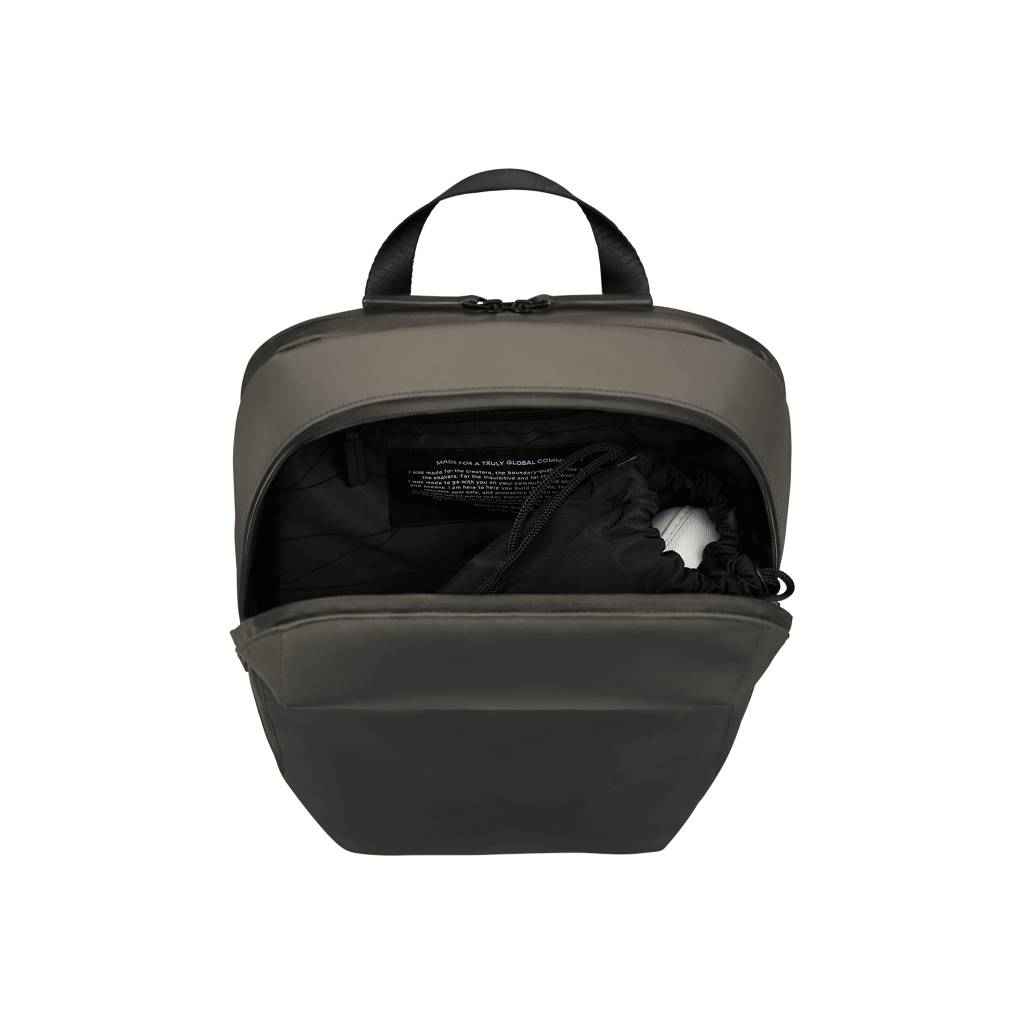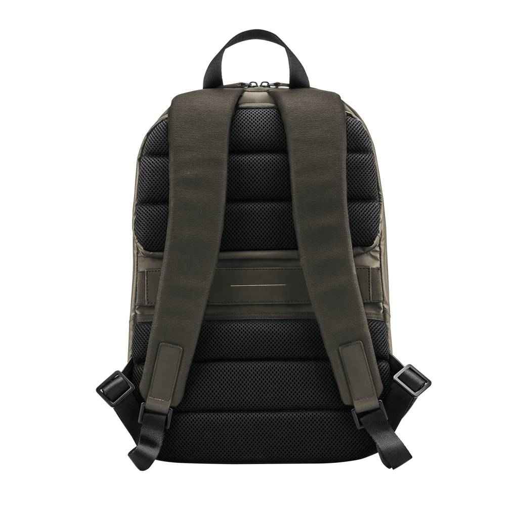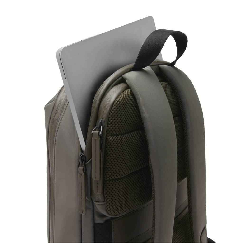 Space for up to 15 laptop. Water-resistant, vegan-tech materials. Smart protective compartments for technical devices and valuables. Highest ergonomic standards, ergo-padded back. .Hidden back pocket for travel essentials Premium strap to secure to Horizn luggage.