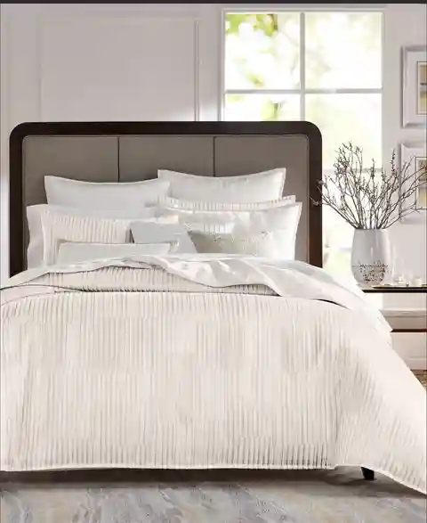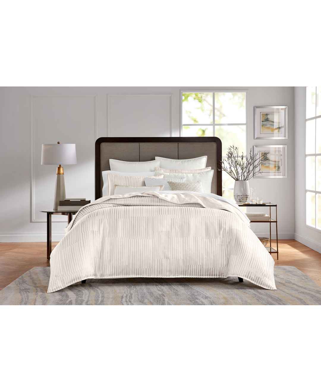 With a hint of metallic shine and a super smooth satin hand, the Metallic Strie duvet cover set from Hotel Collection features a refined take on stripes atop an ivory ground.