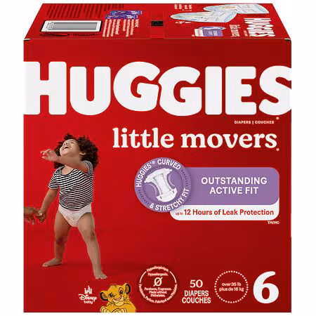 Huggies Little Movers Baby Diapers are designed to stay in place through active play! These disposable baby diapers are designed for worry-free running, jumping and playing. Each Little Movers diaper is up to 100% leak-free (even for blowouts!) and offers up to 12 hours of comfortable protection. Ou...more