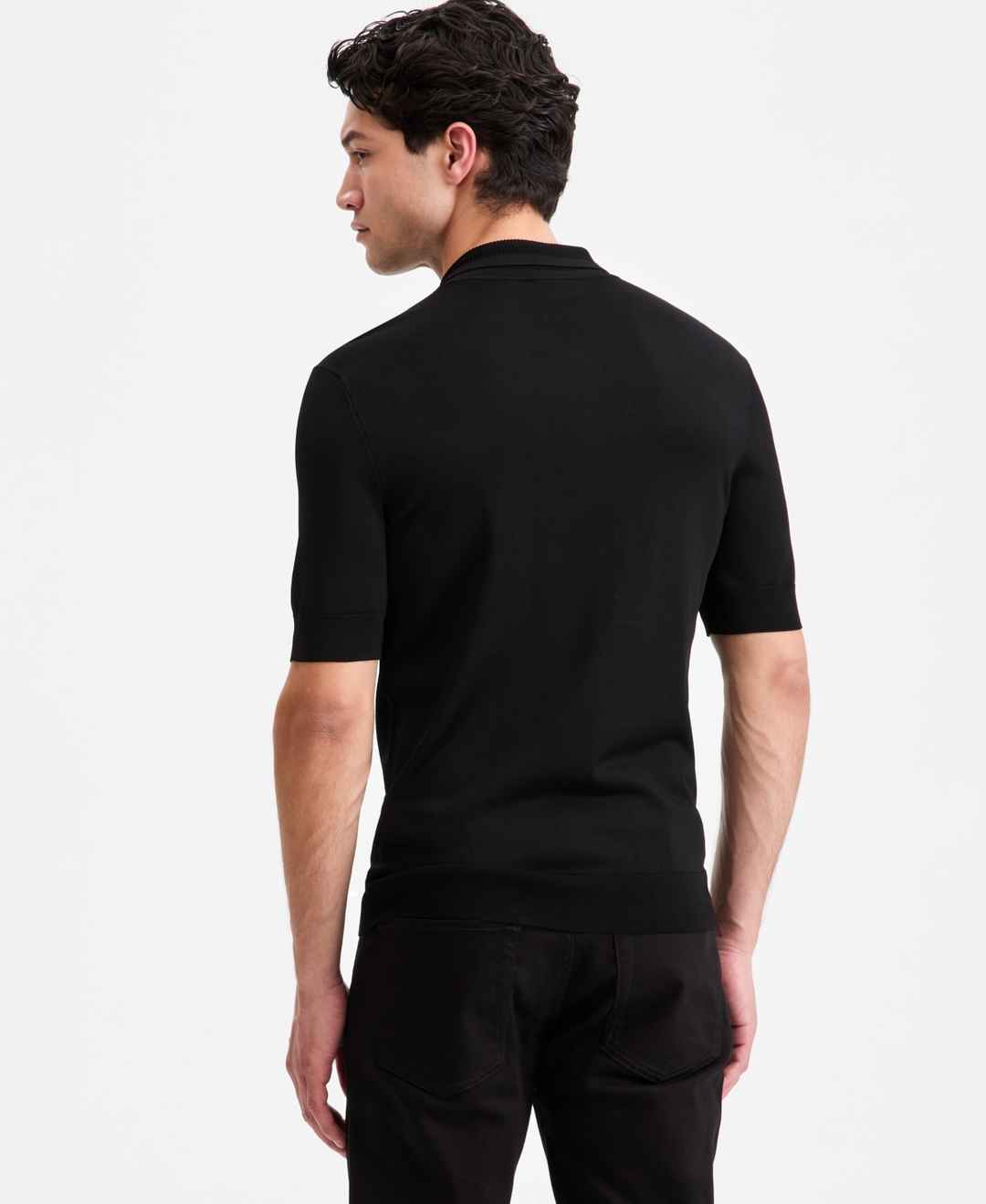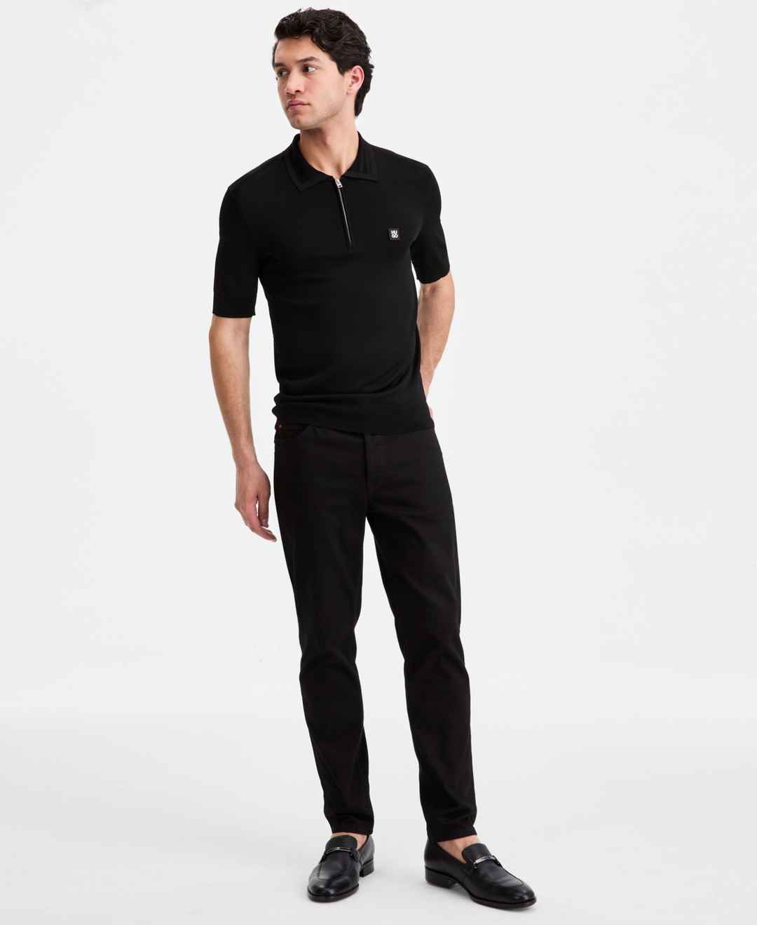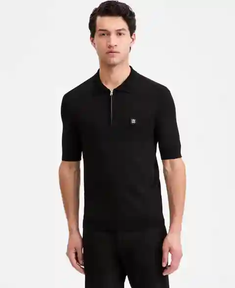 Hugo Boss Men's Jacquard-Accent Half-Zip Polo Shirt - Black