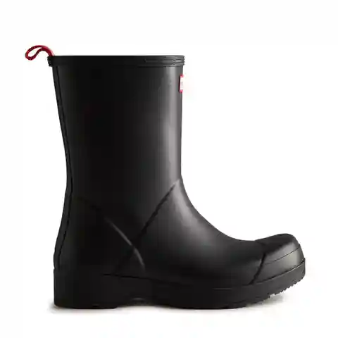 The Play Boot blends playfulness and practicality. A simplifying of the iconic design of the Original Boot, the Play Boot fast became a best-selling Hunter silhouette. Coming in a stylish mid-calf height, with a flatter sole and angled block heel for comfort, finished with a pull tab for easy foot e...more