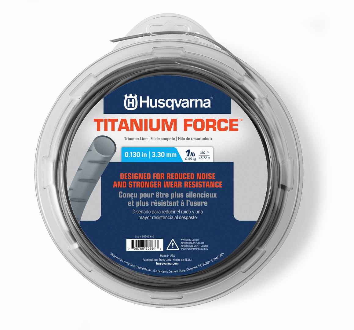 Take your trimming to the next level with Husqvarnas Titanium Force trimmer line. Suitable for all-around use on a wide range of applications, this round and dimpled line offers superior durability and improved flight attributes for smoother trimming and reduced noise. Available in .080-in, .095-in,...more