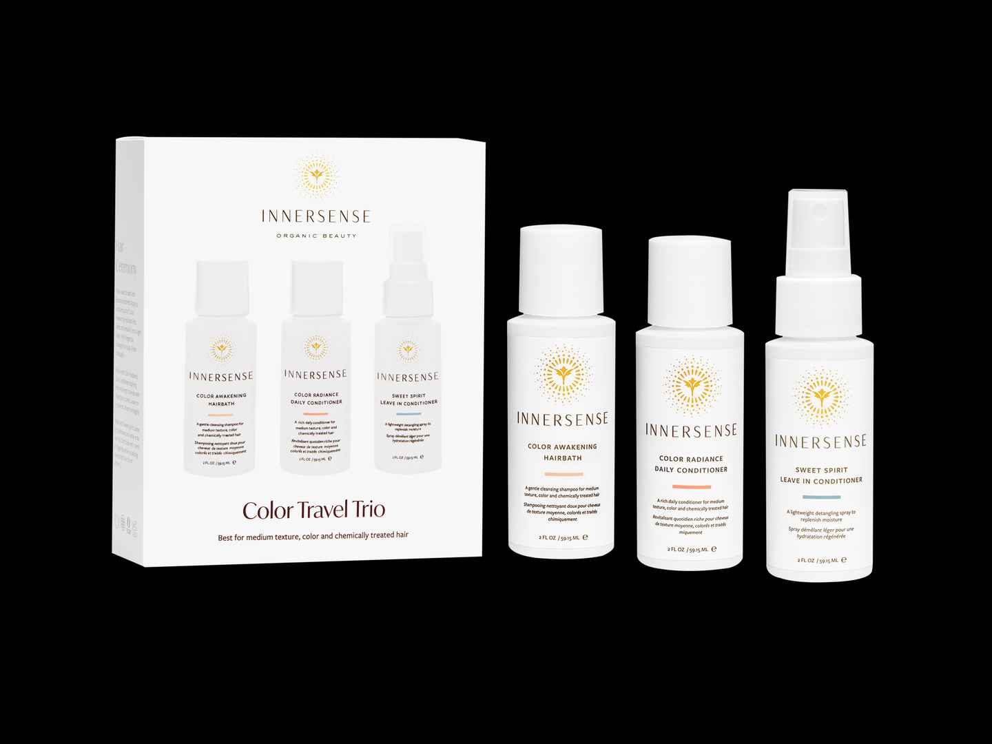 eCosmetics is an authorized retailer of Innersense.Innersense's Travel Trio - Color Collection offers gentle care for vibrant, color-treated hair. Enriched with organic ingredients such as coconut oil, pumpkin seed oil, aloe vera, and honey, this set deeply hydrates and nourishes ea...more