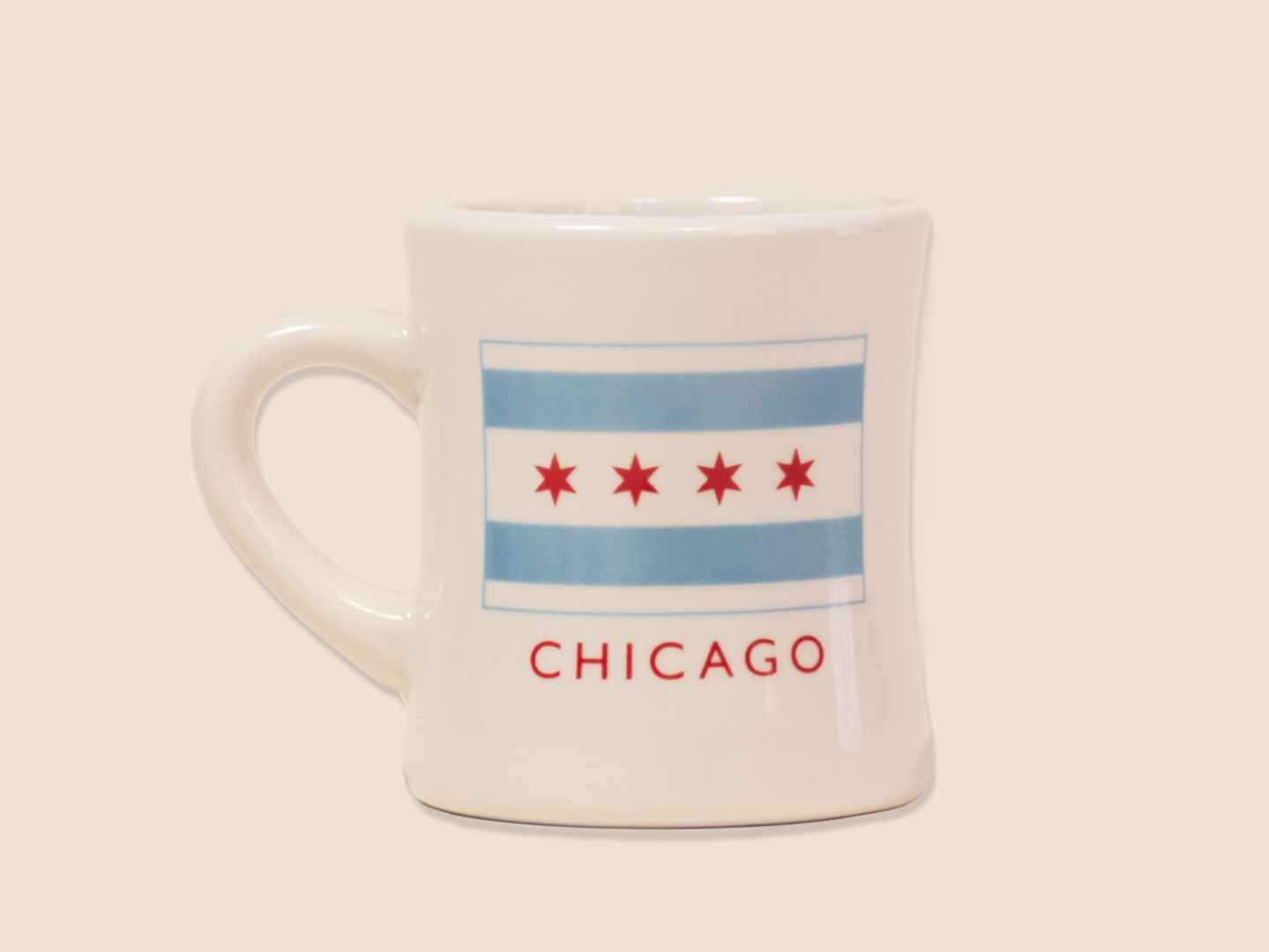 Add an homage to our hometown to your shelf. This 10oz diner mug features the Chicago flag on one side and Intelligentsia wings on the other.