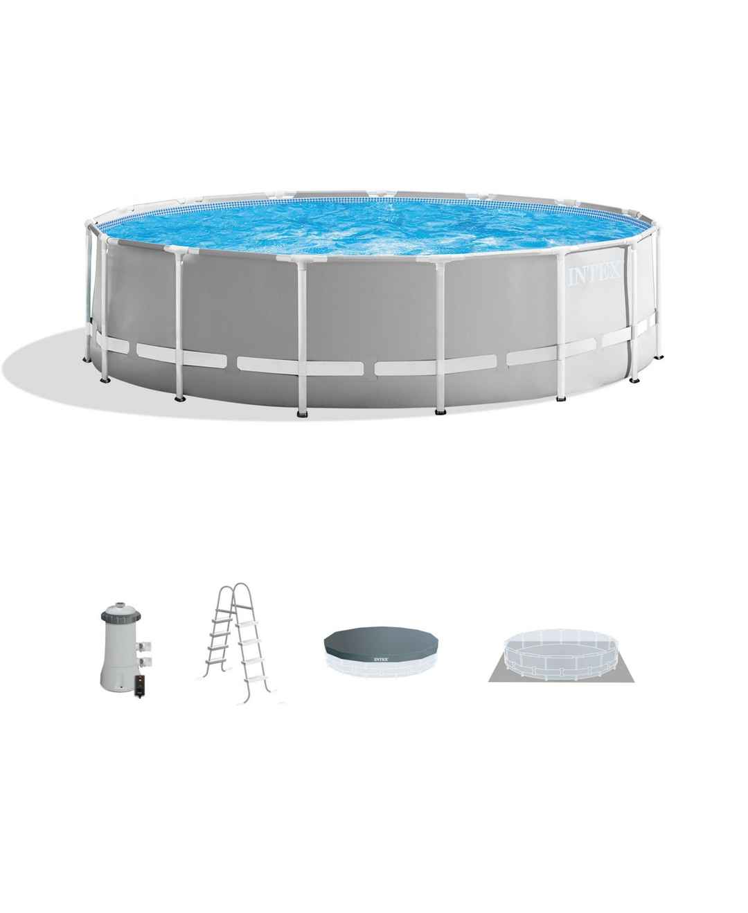 Intex 15ft x 48in Prism Above Ground Swimming Pool Set with Ladder and Cover - Gray