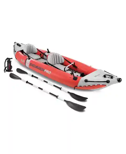 Intex Excursion Pro Inflatable 2 Person Vinyl Kayak with 2 Oars and Pump, Red - Red