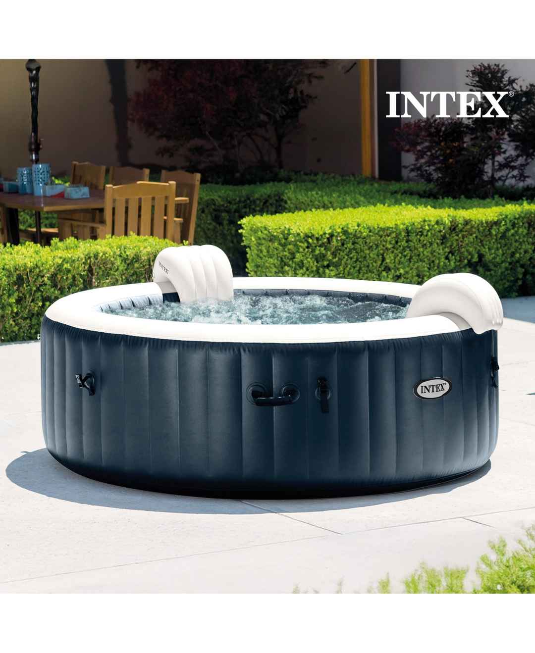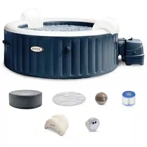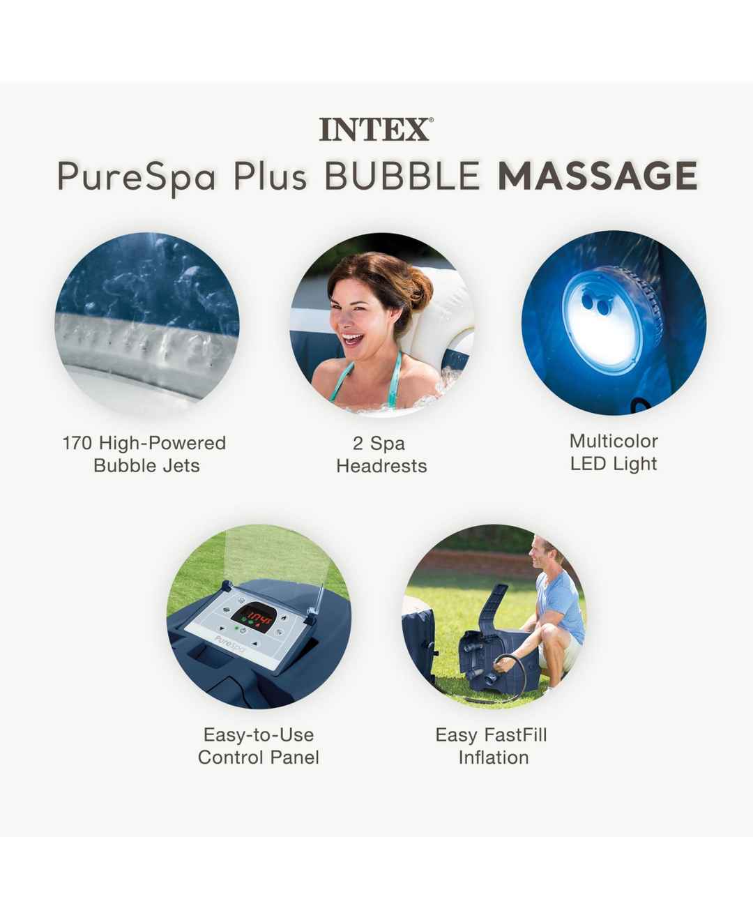 Home Intex Intex PureSpa Plus 6 Person Inflatable Round Hot Tub Set with 170 AirJets, Blue - Dark Blue
