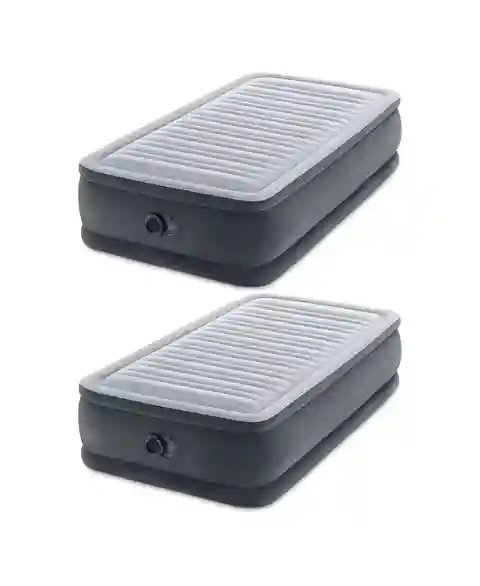 Intex Dura Beam Comfort Plus Airbed Mattress w/ Built In Pump, Twin Size, 2 Pack - Gray